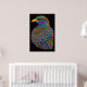 Abstrakter, farbiger Zeichn einer Eule auf schwarzem Hintergrund. Das Seitenverhältnis beträgt 2:3. Es wurde als 24"x36" gedruckt