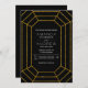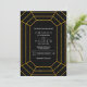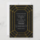 Abstrakte geometrische Gold Glitzer Diamant Juwel moderne Hochzeitseinladung. Dieses zeitgenössische und elegante Hochzeitsinspektionsdesign zeigt eine geometrische Rautenform aus IMITATEN mit goldenem Glitzer auf schwarzem Hintergrund. Es ist perfekt für Ihre Winterhochzeit.