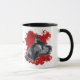 Ein wunderschönes Aquarellbild eines schwarzen Großen Dans hebt sich vor einem abstrakten, leuchtend roten Spritzer-Hintergrund hervor. Das Bild befindet sich auf zwei Seiten der Tasse, mit Ihrem Namen oder einem anderen benutzerdefinierten Text in schwarz.
