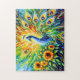 Abstrakter Pfau mit Sonnenblumen in Malerei