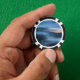 Ein abstrakter Foto-Pokertoken im blauen Farbton. Fotografiertechnik, die sich einer Farbe nähert. Madeleine-Inseln, Quebec, Kanada, Marie-Ève LaBadie Fotograf