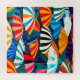 Eine fröhliche Darstellung von sonnengetränkten Tagen und Entspannung am Meer mit bunten gestreiften Sonnenschirmen.