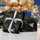 Dieses Verpackungspapier-Ausrüstungsbeschreibungen eine abstrakte Darstellung eines verzierten Weihnachtsbaums mit einem Stern auf die Oberseite, zusammen mit einem schwarzen Hintergrund. Er kennzeichnet auch den Gruß, "FROHE WEIHNACHTEN!" im Rot und im Grün.
