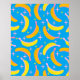Abstraktes Bananenmuster Design auf blauem Hintergrund.