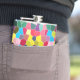 Ein Buntglasentwurf im Spaß, hell, Süßigkeitsfarben. Genießen Sie alle Farben des Regenbogens: rot, orange, gelb, grün, blau, Indigo und Veilchen. Fügen Sie Ihren Namen oder Initialen auf dem hellrosa Band für ein einzigartiges hinzu, besonders angefertigt, Mosaikgeschenk.