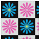 Rosa und blaue Blüte Abstrakt in Karo karierte Schwarz-Weiß-Quadrat Boxen Moderne Oberfläche Muster Design.