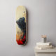 Ultrabreites, detailliertes Bild der Büste einer schwarzen Katze im abstrakten Hintergrund staubgelber mit roten und rostigen Akzenten. Mit generativen Algorithmen und Fotoshop erstellt.