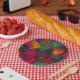 Abstraktes geometrisches, modernes Hexagon formt M Pappteller