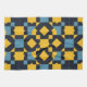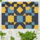 Dynamische Abbildung mit symmetrischem Design mit fett geometrischen Formen in Gelb, Blau und Dunkelfarben, geeignet für moderne und stilvolle Designthemen.