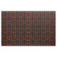 Dieses moderne geometrisch-farbene Stoffdesign zeichnet sich durch ein primitives, ethnisch abstraktes Blitzmuster und Sonnen in Erdtönen von Orange, Rot, Schwarz und Braun aus.