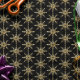 Gold tönt abstrakte Schneeflocken nahtlos auf schwarzem Hintergrund.