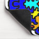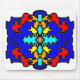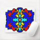 Dieses auffallende Design zeigt ein kühnes, abstraktes Mandala-Muster mit einer hochkontrastreichen Farbpalette aus tiefem Blau, lebendigem Rot und sonnigem Gelb. Die komplizierten, ineinandergreifenden geometrischen Formen schaffen eine moderne und energiegeladene Ästhetik und machen es zu einem Blickfang in jedem Arbeitsbereich. Perfekt für diejenigen, die kühne, zeitgenössische Kunst mit einem Hauch klassischer Symmetrie lieben.