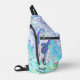 Auf dieser lebendigen Druckausschnitt Nähtasche ist ein psychedelisches Marmor Wirblen Muster von blau, rosa, lila und grün . Groovy Hippie Vibes. Kann auch vorne auf einem blauen Kreis personalisiert werden
