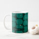 Abstrakte, moderne Formen, personalisierte Tasse. Festige Farbtöne von Grün und Imitat Goldspezies mit Template Textzeile für Namen oder Initialen.
