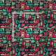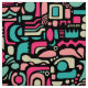 Ein originelles abstraktes Design, bestehend aus vielfältigen abstrakten Formen in einer Palette von fünf harmonischen Farben mit schwarzem Hintergrund. Dieses Muster verwendet eine Vektorgrafik, die es ermöglicht, das Muster zu vergrößern oder zu verkleinern.