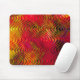 Durchsichtige, abstrakte Farbmuster in lebhaften Rot-, Gelb- und Rosatönen schaffen einen dynamischen und fließenden visuellen Effekt. Kurven bilden ein Bewegungsgefühl, das das Auge über die Komposition zeichne.