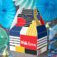 Abstraktes Muster. Patchwork , rot , gelb , blau , weiß , schwarz , gemischt , Streifen , gestreift , kariert , kariert