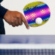 Moderne abstrakte Punkte/Blasen bilden ein lebendiges Kaleidoskop-Regenbogenmuster.