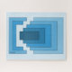 Rechtecke und rechteckige Formen in verschiedenen Blautönen bilden die Grundlage dieses abstrakt-geometrischen Kunstwerks von Richard H. Fay.