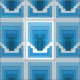Rechtecke und rechteckige Formen in verschiedenen Blautönen bilden die Grundlage dieses abstrakt-geometrischen Kunstwerks von Richard H. Fay.