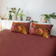 Dieses wunderschöne Kissenkoffer besticht durch ein abstraktes Fraktal Design aus Spiralspirale in warmen Kamintönen in Rot, Orange und Gelb.