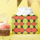 Dieses Geschenkpapier zeichnet sich durch eine abstrakte Blume mit Blütenblättern oder Teardrop-Mustern in Retro-Farbtönen in lebhaften Orange und Grün aus, die auf ähnlichen modernen Motiven aus dem Mittelalter der 1950er und 1960er Jahre und sogar bis in die frühen 1970er Jahre basieren.