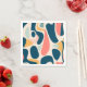 Ein abstraktes Muster mit Bio Formen in einer Retro-Farbpalette aus Korallen, aquamarin, Marineblau und Senfgelb. Die miteinander verbundenen Formen schaffen ein dynamisches und visuell ansprechendes Design