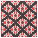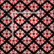 Geometrisches Blumenmuster mit roten und weißen, aufwändigen Designs auf dunklem Hintergrund. Ein nahtloser Stil, der perfekt für Textilien, Tapeten und künstlerische Projekte geeignet ist, die einen kühlen und einzigartigen visuellen Eindruck benötigen.