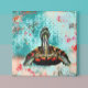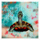Handgezeichnete Schildkröte mit abstraktem Hintergrund. Farbgebung: rot, blau, aquamarin, grün, gelb, lila.