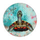 Handgezeichnete Schildkröte mit abstraktem Hintergrund. Farbgebung: rot, blau, aquamarin, grün, gelb, lila.