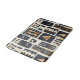 Handgemaltes afrikanisches Lehmtuch mit fett geometrischen Formen in erdigen Tönen schwarz, braun und creme.