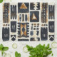 Handgemaltes afrikanisches Lehmtuch mit fett geometrischen Formen in erdigen Tönen schwarz, braun und creme.