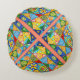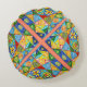 Vibrierende geometrische Muster füllen das Bild mit Kreisen, Dreiecken und Wirbel in einem Farbkaleidoskop, das Blau, Grün, Gelb und Rot umfasst. Das komplexe Design schafft ein Gefühl von Symmetrie und Ausgewogenheit.