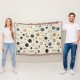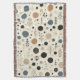 Ein elegantes Muster mit verschiedenen Kreisen und botanischen Motiven in einer sanften Farbpalette aus Beige, Braun, Schwarz und Blau. Dieses minimalistische Design erinnert an eine ruhige Waldatmosphäre.