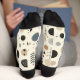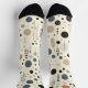 Ein elegantes Muster mit verschiedenen Kreisen und botanischen Motiven in einer sanften Farbpalette aus Beige, Braun, Schwarz und Blau. Dieses minimalistische Design erinnert an eine ruhige Waldatmosphäre.