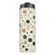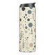 Ein elegantes Muster mit verschiedenen Kreisen und botanischen Motiven in einer sanften Farbpalette aus Beige, Braun, Schwarz und Blau. Dieses minimalistische Design erinnert an eine ruhige Waldatmosphäre.