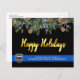 Mit dieser einzigartigen Thin Blue Line Police Department Weihnachtskarte senden Sie frohe Weihnachtsgrüße an Freunde, Geschäftsleute , andere Strafverfolgungsbehörden und Ihre Gemeinde - Moderne Schwarz und Blau mit heiligen Blätter, Beeren und edlem Goldskript. Personalisieren Sie mit dem Logo, der Nachricht und der Abteilung der Polizeiabteilung. Diese preiswerten Weihnachtspostkarten müssen als übergroße Postkarten verschickt werden, daher können die Postkarten mit normalen Versandkosten belastet sein, benötigen aber weder einen Umschlag noch eine Rücksendekarte. COPYRIGHT © 2020 Judy Burrows, Black Dog Art - Alle Rechte vorbehalten. Abteilung für Haushaltspolizei Weihnachtskarten