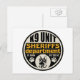 Schwarzes K9 Logo mit großem K9 Unit Sheriffs Department Text. Untere 'In Hunden We Trust' und zwei Hundekuppeln neben einem K9 deutschen Schäferhundkopf. Weiße, goldene und schwarze Farben, großartiges K9 Unit Geschenk für Handler, Sheriff Abteilungen und Fans!