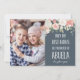 Nur die besten Mütter werden nach Abuela befördert! Teilen Sie die Gratulationen der Mutter mit dieser schönen Flachkarte, die ein wertvolles Foto ihres Enkels oder Enkels enthält. Persönlich mit ihren Namen auf der rechten Seite, in weißer Schrift auf einem eleganten, blau-schieferfarbenen Hintergrund mit pfirsichfarbenen und rot-rosa Blume und grünem Blattwerk. Fügen Sie der Rückseite eine benutzerdefinierte, vorgedruckte Nachricht hinzu.