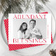 Farbenfrohe und moderne Urlaubsfotokarte mit der Phrase "Abundant Segen" in roter Schrift. Personalisieren Sie die Karte, indem Sie Foto, Namen und Jahr hinzufügen. Die Karte zeigt ein rot-weiß gestreiftes Muster an.