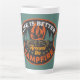 Die Camping-Grafik im Retro-Abzeichen-Stil zeigt das Lagerfeuer mit dem Text "Life Is Better Around Around the Campfire" auf dunklem Aqua-Hintergrund