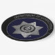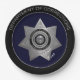 Korrektur Officer Abzeichen (Paper Party Teller) - ist ein grafisches Kunstdesign. Das Abzeichen ist in Silber (oder Gold) und Schwarz mit einer kleinen Touch Blau erstellt. Ein dekorativer 7 (7) Punkte silber/goldener Stern bildet das Abzeichen. Text, der die Spitze des Abzeichens kurbelt, lautet: ABTEILUNG DER KORREKTUREN. Text, der den unteren liest: KORREKTIONSBÜRO. Diese Wörter sitzen auf einem massiven blau-schwarzen Ring. Mehr Silber/Gold schmückt das Abzeichen durchweg. In der Mitte steht ein Adleremblem mit Silber-/Goldstern. Kleinerer Text in der Mitte lautet: Siegel des Staat. Das Abzeichen ist nicht für den Staat spezifisch. Unter dem Abzeichen befindet sich eine solide blaue Mitte. Ein schwarzer Außenrand mit silber/goldfarbenem Text, der um den oberen Rand schwebt und lautet: DEPARTMENT OF CORRECTIONS. Dieses Abzeichen-Design kommt in Silber oder Gold mit verschiedenen Hintergrundstilen. Das Design ist auch mit einem Foto in meinen anderen Zazzle-Läden erhältlich.