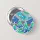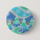 Eine moderne, stilvolle Winterlandschaft mit mattierten Kiefern und glitzernden Schneeflocken. Button mit einem blau, grün, silber, grau und weiß anpassbaren Design für Sie, um mit Ihrem eigenen Text, Bildern und Ideen zu personalisieren. Ein digital verstärkter Bleistift, der von Jess Perry gezeichnet wird.