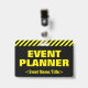 Dieses aufmerksamkeitsstarke Abzeichen-Design enthält die Meldung "EVENT PLANNER". Ein solches Abzeichen könnte vielleicht dazu benutzt werden, zu identifizieren, dass der Träger bei einer Veranstaltung offiziell ist. [~Z0000307]