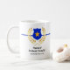 Custom Branded Thin Blue Line Police Abzeichen White Coffee Tasse. Erhöhen Sie Ihren Stil mit einer hoch entwickelten und personalisierten Polizeibeamten-Tasse, die Professionalität ausstrahlt. Dieses exquisite Design zeigt eine dünne blaue Linie, einen zeitlosen Lorbeerkranz und ein hervorragendes Logo des blauen Offiziers auf der Vorderseite. Sie haben die Möglichkeit, das vorhandene Template-Logo durch das Emblem Ihrer Abteilung zu ersetzen und der Tasse eine einzigartige Touch hinzuzufügen. Fühlen Sie sich frei, um die Textzeilen, um diese Tasse wirklich Ihre. Es ist eine ideale Wahl für ein nachdenkliches Vatertagsgeschenk, das sowohl Eleganz als auch Bewunderung für die Strafverfolgung widerspiegelt.