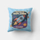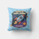 Dieses spielerische personalisierte Wurfkissen besticht durch ein gewagtes Abzeichen für Weltraumforscher. In der Mitte des Abzeichens befindet sich eine spielerische Cartoon-Rakete, die durch den Weltraum strömt und von Planeten umkreist wird.