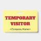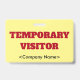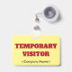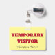 Dieses kühne Abzeichen-Design enthält die Meldung "VORÜBERGEHENDER BESUCHER", einen benutzerdefinierbaren Firmennamen oder eine andere benutzerdefinierte Nachricht. Ein solches Abzeichen könnte dazu verwendet werden, um zu identifizieren, ob jemand am Arbeitsplatz oder im Unternehmen ein autorisierter Gast/Besucher ist. [~Z0000307]