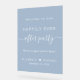 Symbole d'accueil de mariage en acrylique transparent et poussiéreux avec "Welcome To Our Happily Ever After Party" dans une simple typographie blanche et un élégant script blanc avec des swashes, vos prénoms unis par un coeur et votre date de réception. Idéal pour les réceptions après un évènement ou une petite mariage privée.