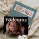 Les cartes faire-part de naissance fraîches et modernes sont dotées d'une photo horizontale à fond saigné ou orientée paysage avec "bienvenue" superposé sur le dessus en papier rose en feuille d'or. Personnalisez avec le nom du bébé et les statistiques de naissance en bas, et ajoutez trois photos supplémentaires à l'arrière, ainsi qu'un message personnel.