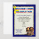 Une invitation unique à la fête nationale. Au coin inférieur, une maison d'oiseaux "home" porte une bannière de bienvenue ; sur le dessus se trouve un ruban jaune (bien sûr). Un vétérinaire qui rentre chez lui en toute sécurité est certainement un motif de fête !!! Vous pouvez customiser ce design en changeant la couleur arrière - plan ; et la taille et les couleurs des polices.